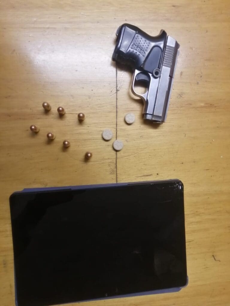 The firearm, a Baby Brown with an erased serial number, was found with one live round. The second suspect, aged 33, was arrested in John Scott Ext 8 for possession of drugs and live ammunition. Three Mandrax tablets and six live rounds were found in his possession by members of the Eldorado Park SAPS, whilst they were performing stop and searches in the area.