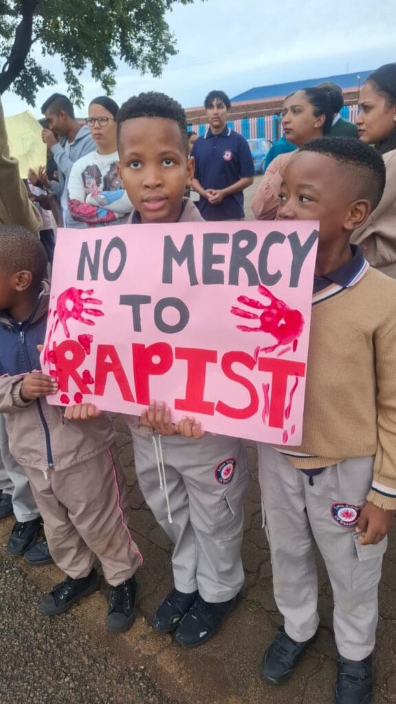 With placards held high and voices united, both learners and teachers staged a peaceful protest outside the school gates, calling for urgent action in the delayed prosecution of those accused of sexually abusing two seven-year-old learners -Cwecwe and Alu.