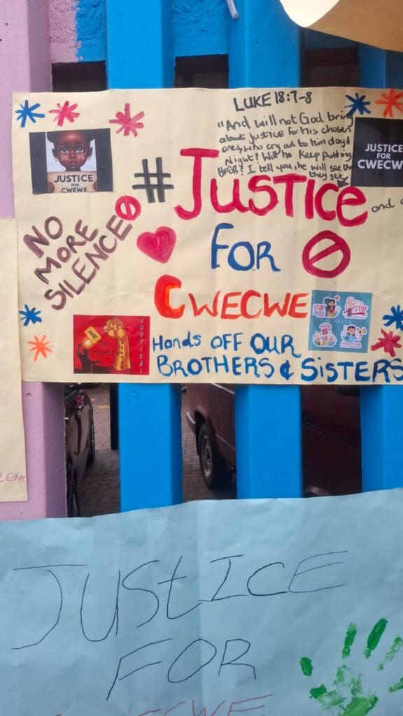 The demonstration served not only as a plea for justice but also as a firm stand against gender-based violence (GBV) and all forms of violence against children. Their message was loud and clear: “No to rape” and “Justice for Cwecwe” “Justice for Alu” “Justice for all”.
