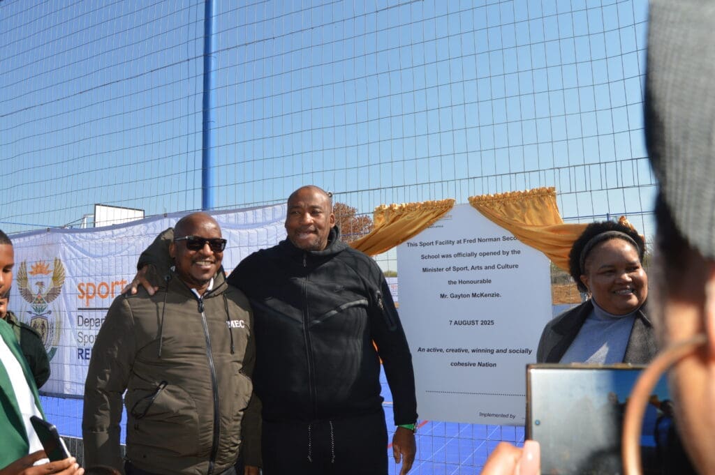 On 7 August, Minister of Sport, Arts and Culture Gayton McKenzie, accompanied by Deputy Minister Peace Mabe, Gauteng MEC Matome Chiloane, The Sports Trust, Ward 7’s Cllr Lois Simonse and other stakeholders, officially handed over two brand-new multi-purpose sports facilities to Finetown Primary School and Fred Norman Secondary School in Ennerdale.
