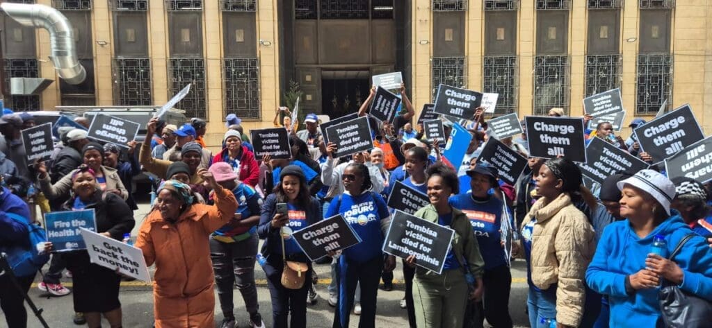 The Democratic Alliance (DA) in Gauteng led a picket today outside Premier Panyaza Lesufi’s office to demand criminal charges against all those implicated in the looting at Tembisa Hospital, as well as a speedy process to sell off the assets of syndicate kingpins so the money is directly returned to assist hospital patients.
