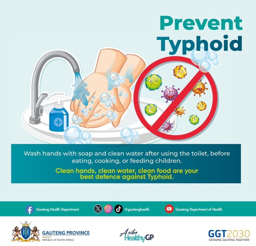 Gauteng Health is urging the public to remain alert for symptoms and to practice proper hygiene. Health authorities are currently investigating the source of infections. Recent drinking-water tests in Tshwane have not detected Salmonella Typhi, suggesting that the piped water supply may not be the source. However, because the exact source has not yet been confirmed, the public is advised to avoid untreated water from unverified boreholes, streams, or rivers.