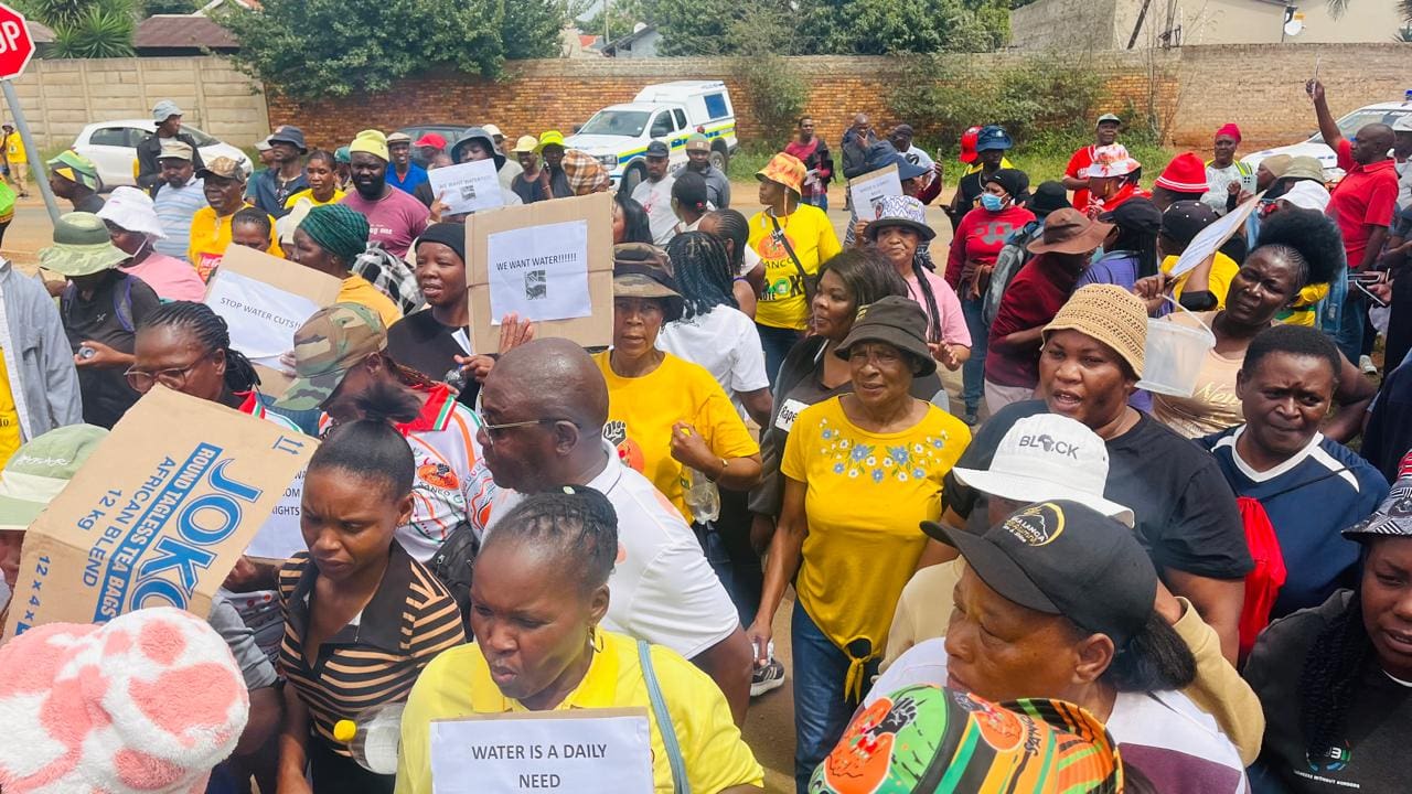 The march began at the BP on Sheffield Road and proceeded to the Johannesburg Water (JW) depot in Ennerdale, where residents gathered to demand urgent action over ongoing water outages affecting their communities.