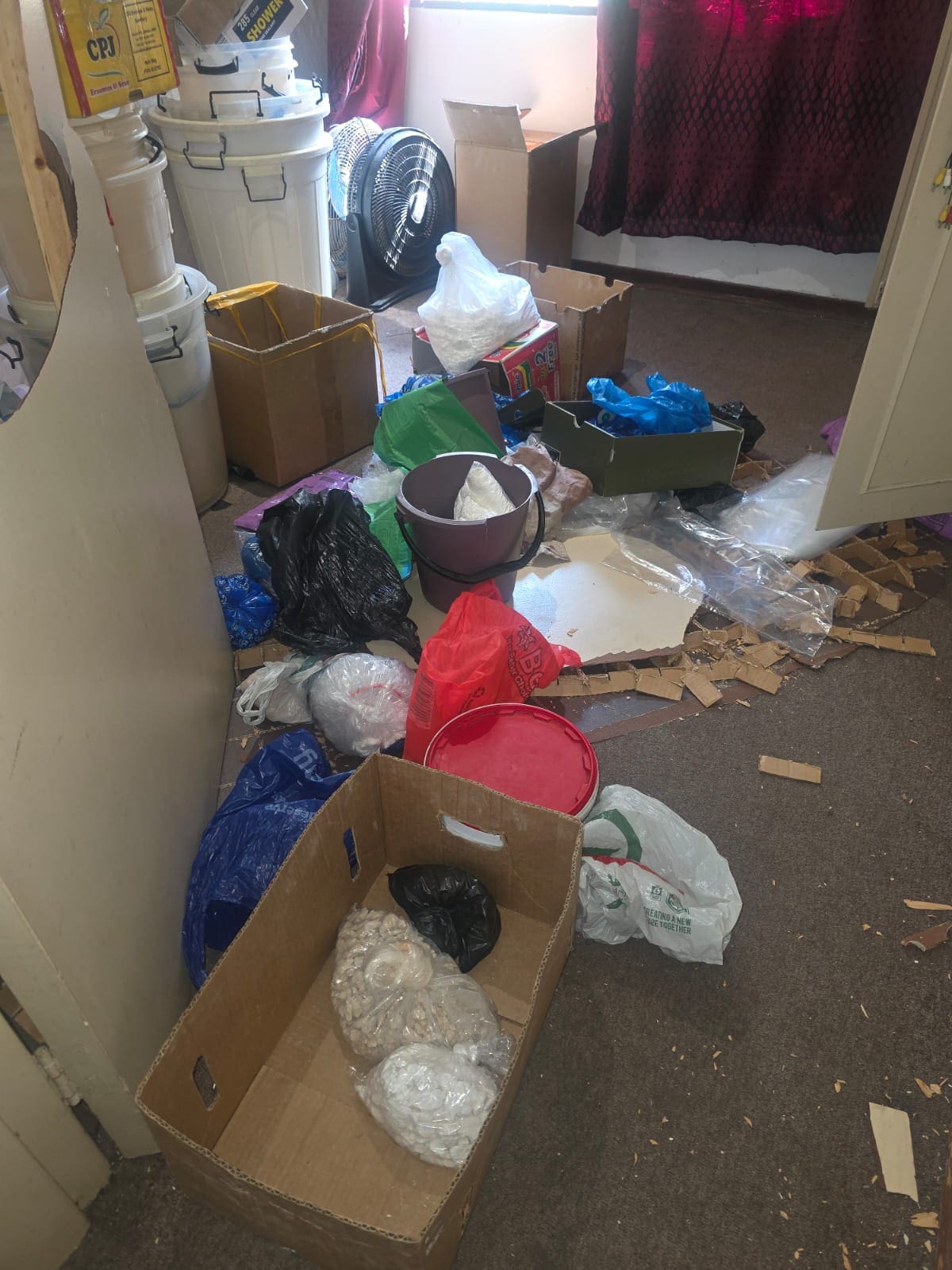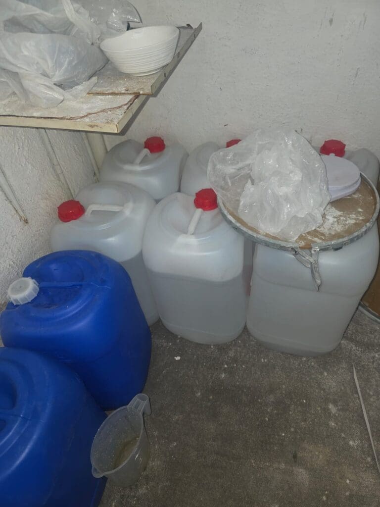 Gauteng SAPS spokesperson, Col Dimakatso Nevhuhulwi, said: “On Sunday morning, the team operationalised intelligence information which led them to a house where they found chemicals, equipment and end product suspected to be drugs. The product found is estimated to a street value of approximately R1.5 million.”